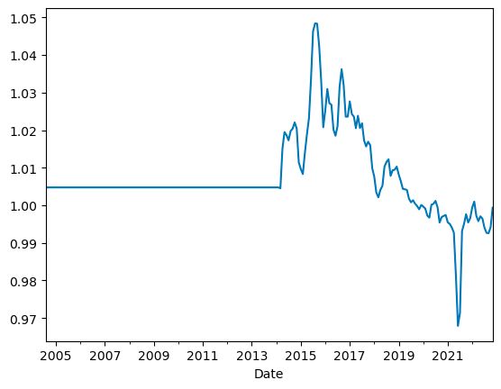 (df["Adj Close"][c1] / df["Adj Close"][c2]).resample("M").mean().plot()