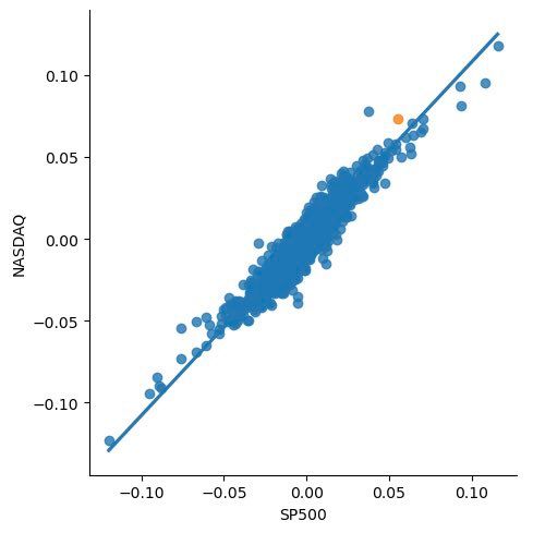 Last ~20 years of daily returns (today in orange; obviously these indices overlap)