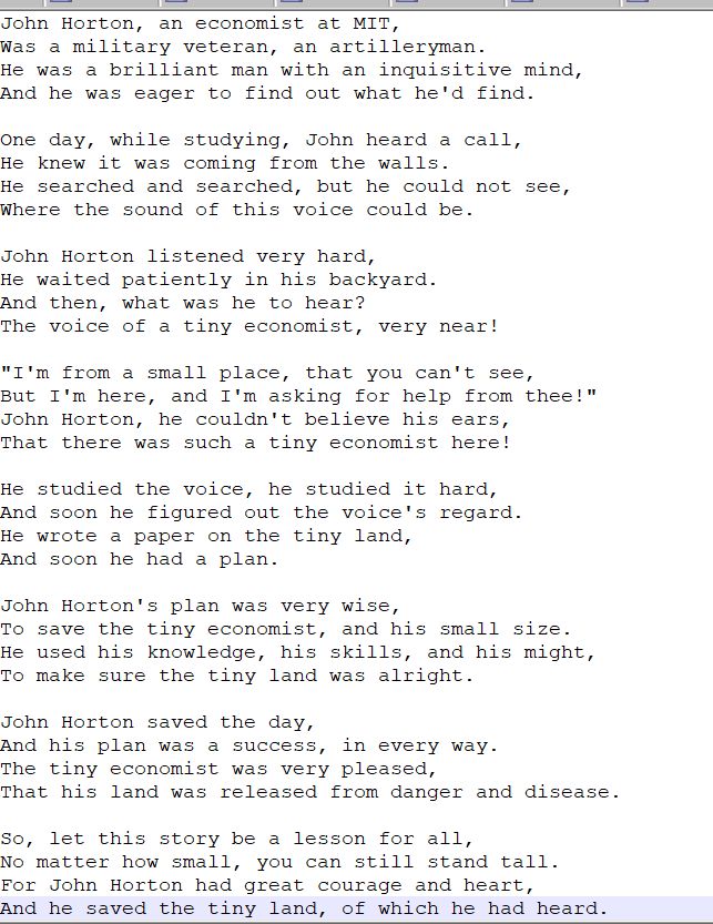 I just made it write John Horton Hears a Who.