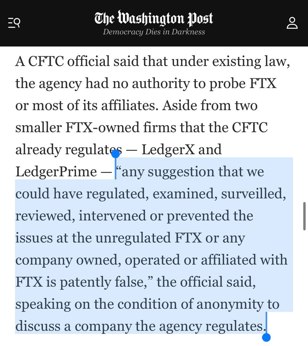 The sentence (somewhat unfairly eliding to): “‘Any suggestion that we could have regulated…’ … a company the agency regulates” is amazing