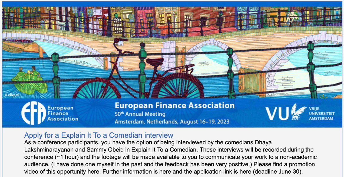This is cool: EFA running a session where comedians interview folks about their papers @EFA_org/1666058857926238209
