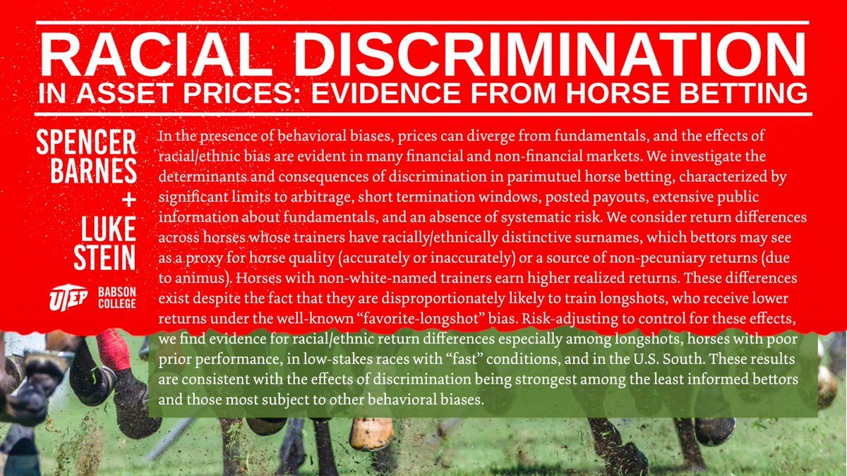 @SpencerBarnes99 @Rice_Biz @dhzecon @KunalSSachdeva Super excited for @SpencerBarnes99’ upcoming presentation on our new “Racial Discrimination in Asset Prices: Evidence from Horse Betting” Abstract👇, and draft coming soon @SpencerBarnes99/1694890303109366166