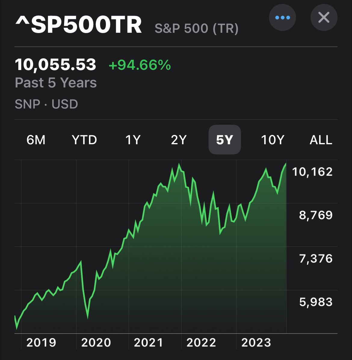 Right now, ANY buy-and-hold investment in the S&P 500 EVER has made money* We’re at an all-time high, which may not make the news because doofuses ignore dividends *Nominal—not in excess of inflation or opportunity cost; assumes daily reinvestment of dividends; ignores taxes @lukestein/1237852048952942593