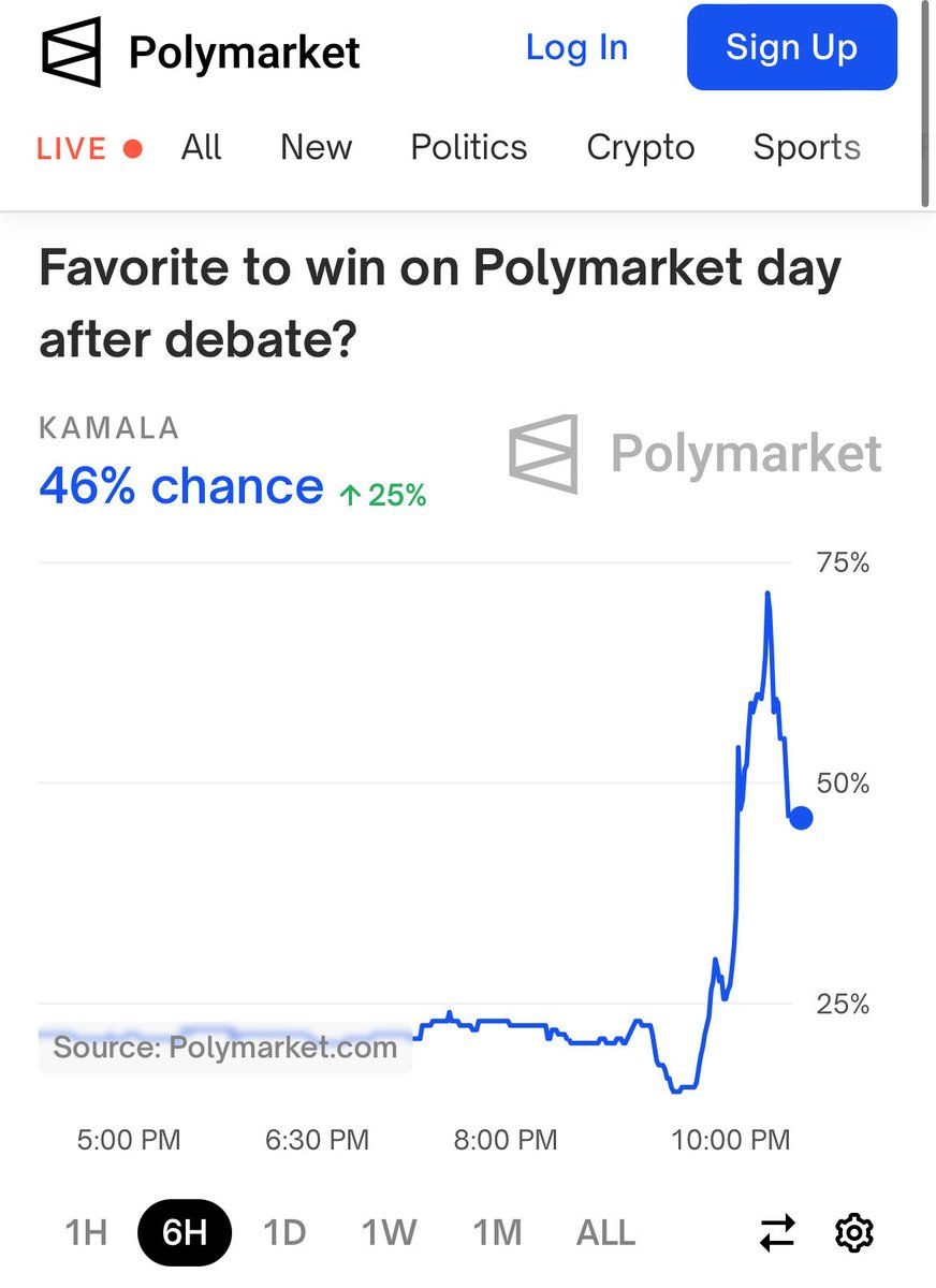 @rajivatbarnard @Polymarket 😔 polymarket.com/event/favorite-to-win-on-polymarket-one-day-after-debate (No implication that there’s manipulation—might be expensive tonight?—but another binary on a knife-edge price)